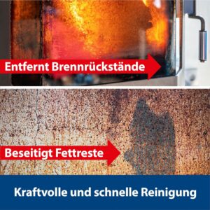 - Schnelle Wirkung: Die aktive Wirkformel löst selbst hartnäckige Verschmutzungen wie Rauchharz und Ruß in kürzester Zeit.