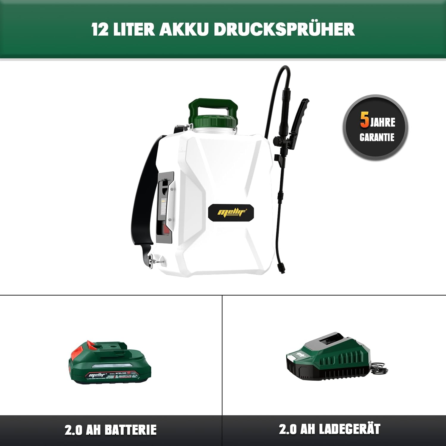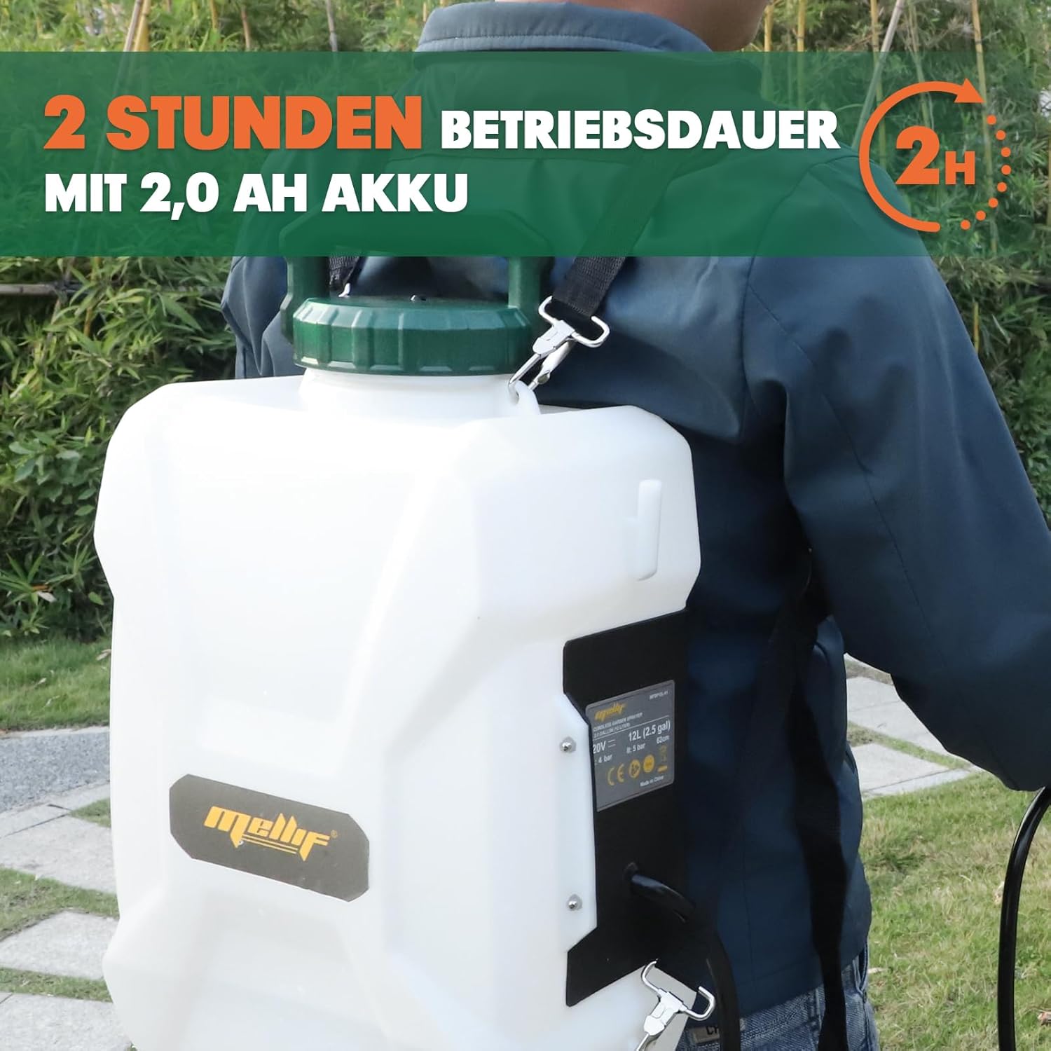 Mellif Akku Drucksprüher 12L für Makita Akku 18V, Drucksprühgerät mit 55PSI Sprühdruck, Spühweite bis 6M, 7Düsen, enthält 2,0 Ah Mellif Akku & LadegerätMellif Akku Drucksprüher 12L für Makita Akku 18V, Drucksprühgerät mit 55PSI Sprühdruck, Spühweite bis 6M, 7Düsen, enthält 2,0 Ah Mellif Akku & Ladegerät