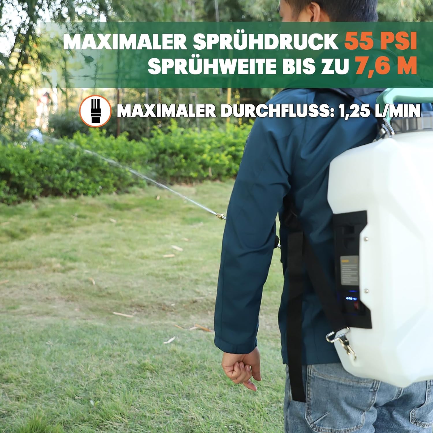 • Automatische Pumpe: Mit einem Sprühdruck von 55 PSI sorgt Akku Drucksprühgerät für gleichmäßige und konstante Sprühleistung – ganz ohne manuelles Pumpen. Spart Zeit und Energie bei optimalem Sprühergebnis