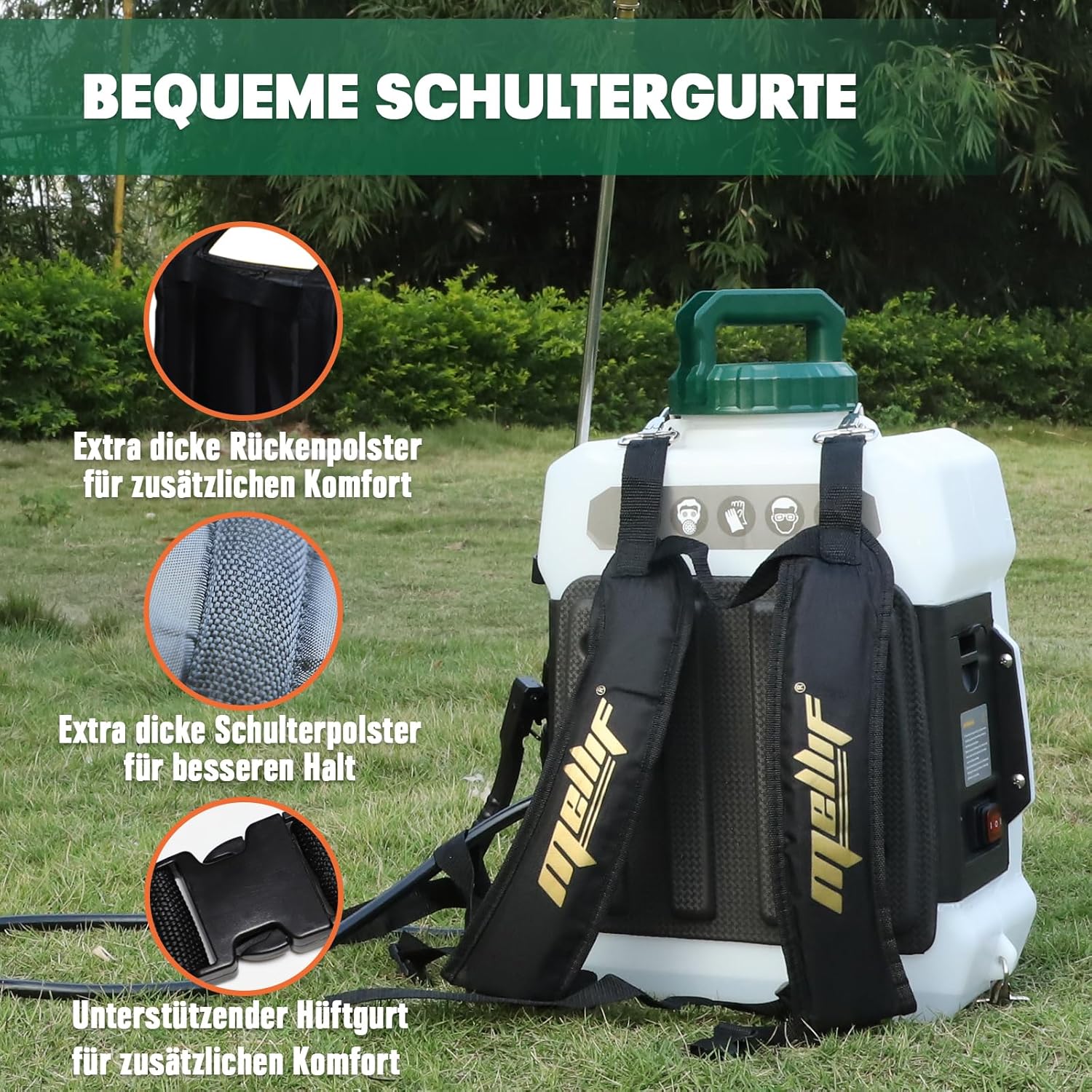 • Kabellos & tragbar – Das kabellose Design macht den Sprüher ideal für den Einsatz im Freien. Mit einem bequemen und stabilen Schultergurt, der Ermüdungserscheinungen während der Arbeit reduziert