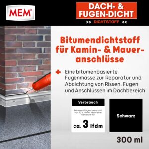 MEM Dach- und Fugendicht richtet sich an Dachdecker, Handwerker und ambitionierte Heimwerker, die schnelle Reparaturen an kritischen Stellen am Haus durchführen müssen. Die lösemittelfreie Dichtungsmasse dient der dauerhaften Ausbesserung von Rissen, Fugen und Anschlüssen, um Leckagen effektiv zu stoppen. Das Produkt ist die Lösung für alle, die eine reparaturfreundliche und haftstarke Versiegelung im Außenbereich für den direkten Arbeitseinsatz suchen.
