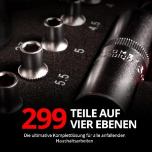 Der Mephisto Werkzeugtrolley Werkzeugkoffer ist die Komplettlösung für ambitionierte Heimwerker und mobile Handwerker, die keine Lust auf ständiges Suchen in verschiedenen Kisten haben. Mit seinem 299-teiligen Sortiment aus Chrom-Vanadium-Stahl deckst du von der Smartphone-Reparatur bis zur Montage in der Garage den Großteil aller gängigen Arbeiten ab.