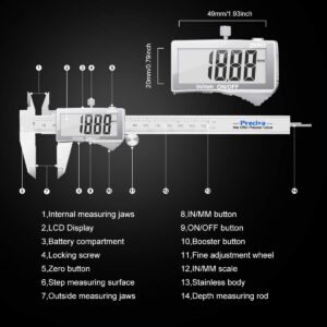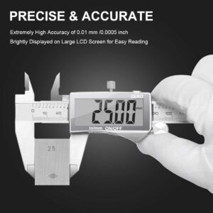 Dieser digitale Preciva Messschieber ist das ideale Präzisionswerkzeug für Mechaniker, Modellbauer und ambitionierte Hobby-Handwerker, die exakte Maße in der Werkstatt benötigen. Mit einer Messgenauigkeit von 0,03 mm liefert er zuverlässige Ergebnisse für Innen-, Außen-, Tiefen- und Stufenmessungen. Ob in der Kfz-Werkstatt oder bei filigranen Holzarbeiten – dieses Tool ist dein robuster Begleiter für präzises Arbeiten.