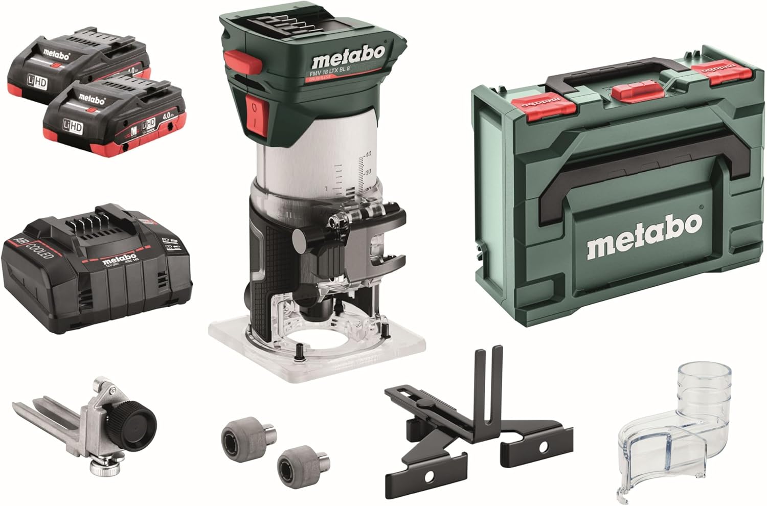 Die metabo Akku-Kantenfräse FMV 18 LTX BL 8 ist das präzise Werkzeug für Schreiner, Möbelbauer und anspruchsvolle Heimwerker, die mobil und flexibel arbeiten wollen. Dank ihres bürstenlosen Motors und der kabellosen Freiheit ermöglicht sie Kantenbearbeitung auf höchstem Niveau – direkt in der Werkstatt oder direkt auf der Baustelle.