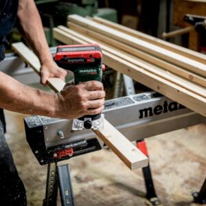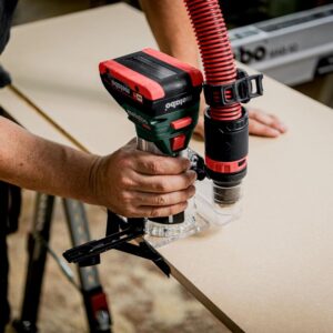 Die Metabo Akku-Kantenfräse ist mit einem leistungsstarken Brushless-Motor ausgestattet. Dieser sorgt für eine hervorragende Fräsgeschwindigkeit und effizientes Arbeiten in Holz sowie holzähnlichen Werkstoffen.
