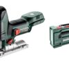 metabo Akku-Stichsäge ST 18 LT 130 BL - 18 V, 130 mm Schnitttiefe - Pendelhub, LED-Licht, werkzeugloser Sägeblattwechsel, Späneblasfunktion, Absaugung, für Holz, Metall & Kunststoff - Inkl. Zubehör