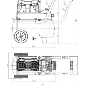 Dieser Kompressor ist als Silent-Gerät konzipiert und arbeitet besonders leise mit einem Schalldruckpegel von nur 60 dB(A). Damit eignet er sich hervorragend für den Einsatz in lärmsensiblen Umgebungen wie Garagen, Werkstätten oder sogar Innenräumen.