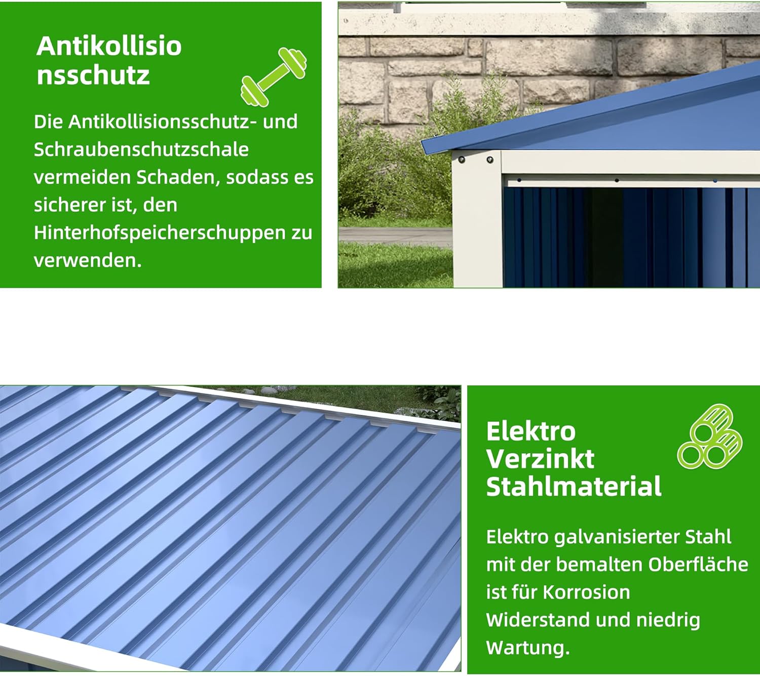 - Witterungsschutz durch Metallbauweise: Schützt die sensible Ladeelektronik und das Gehäuse des Mähers effektiv vor UV-Strahlung und starkem Regen, was die Lebensdauer der Akkus merklich verlängert.