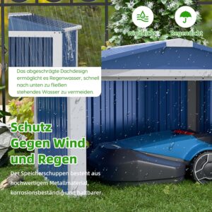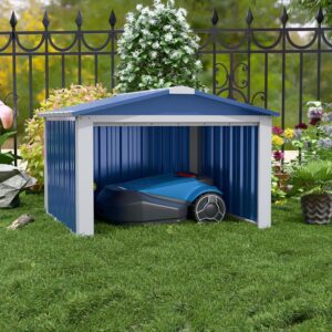 Diese Metall Mähroboter Garage mit Satteldach ist die passende Schutzlösung für alle, die ihren Rasenmähroboter vor direkter Witterung bewahren wollen. Sie richtet sich an Hausbesitzer und Hobbygärtner, die Wert auf eine saubere, wetterfeste Unterbringung der Ladestation suchen, ohne dabei ein massives Gartenhaus errichten zu müssen.