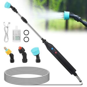 Mineup Akku Drucksprüher, 3.7 V Elektrischer Drucksprüher, Elektrischer Sprühstab mit 3 Düsen und 5m Schlauch, Wiederaufladbar USB Gartensprüher Bewässerung Teleskop Gießstab für Bewässern