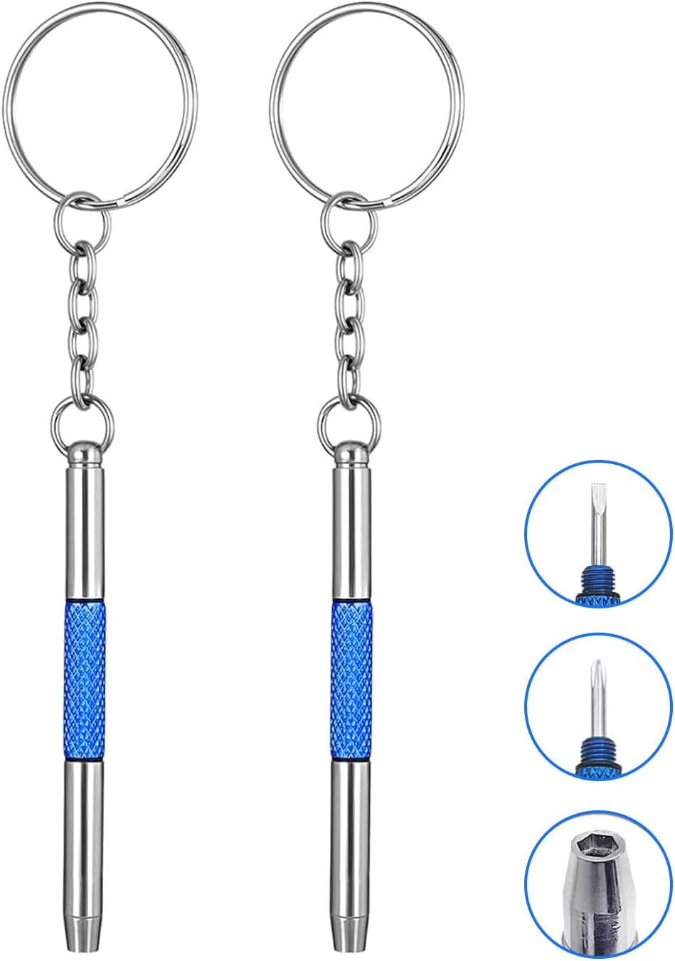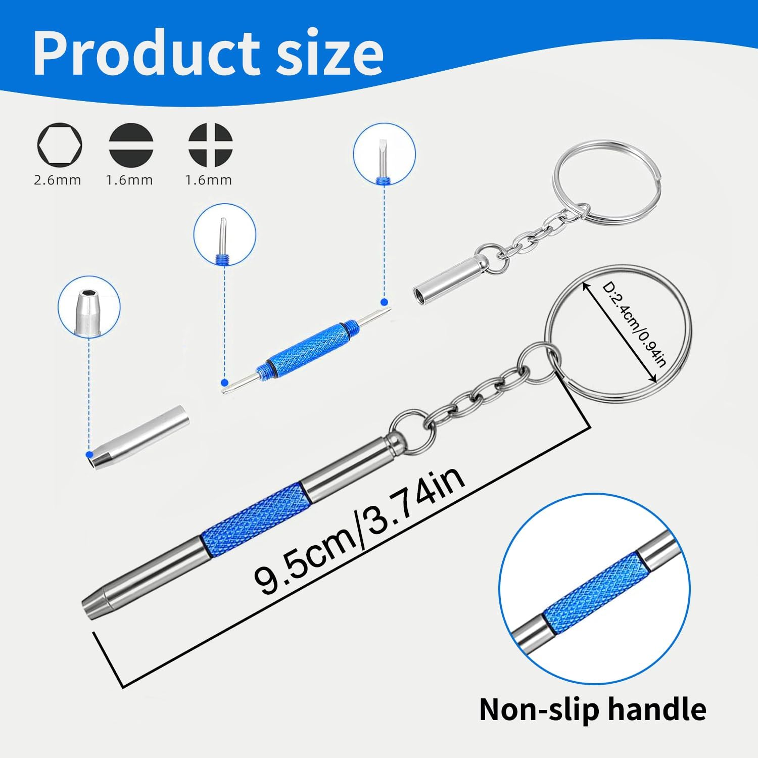 2 Stück Mini Brillen Schraubendreher, 3 in 1 Edelstahl Screwdriver Brillen Reparatur Set, Brillenwerkzeug Set Klein mit Schlüsselbund Tragbarer Schraubendreher für brillen , Schmuck und Uhren Reparatur Farbe: Silber + Blau Material: Metalllegierung Menge: 2 Stück Produktgröße: Schraubendreher plus Schlüsselanhänger Kette Gesamtlänge 10,5 cm Packliste:2 Stück kleiner Schraubendreher Mini-Größe und dennoch äußerst vielseitig: Lässt sich leicht am Schlüsselbund oder in der Tasche tragen. Schnelle L