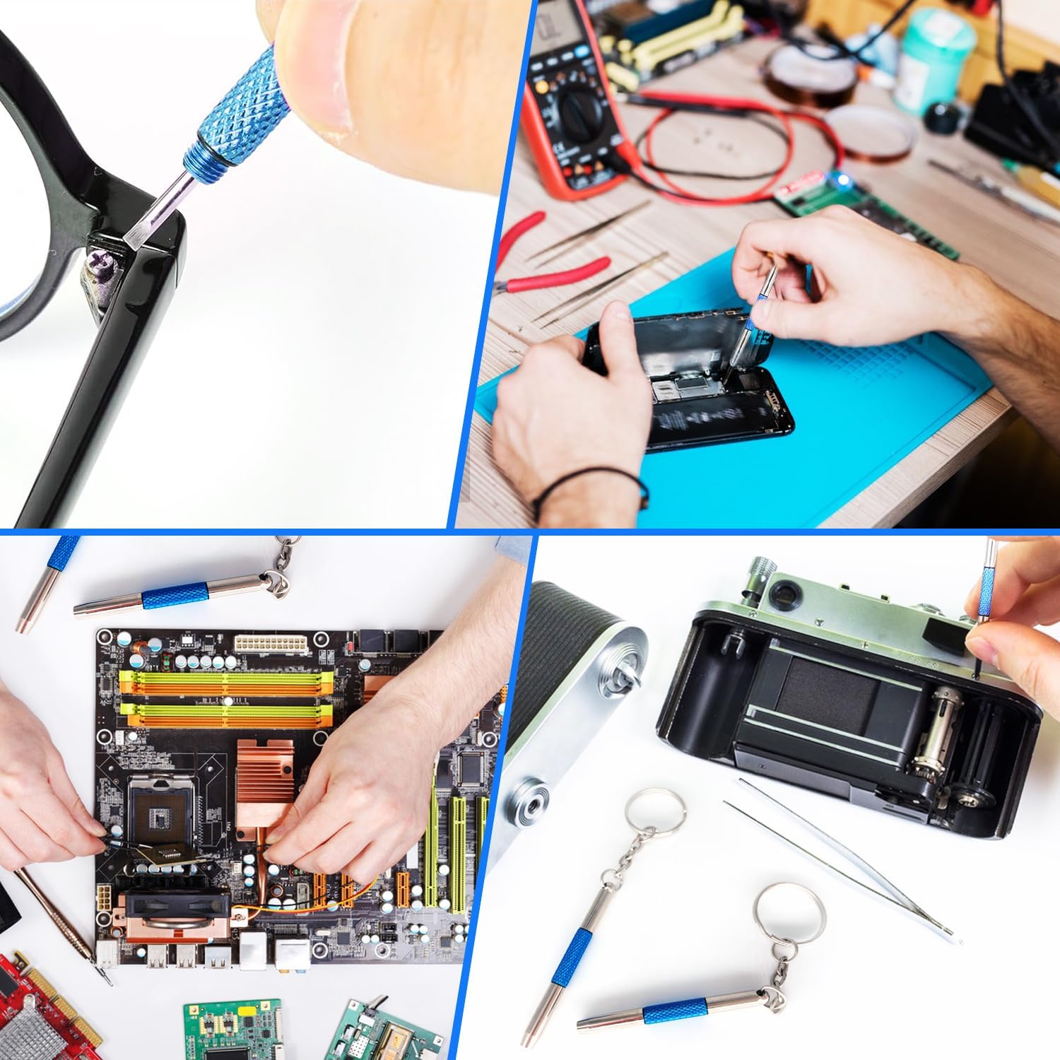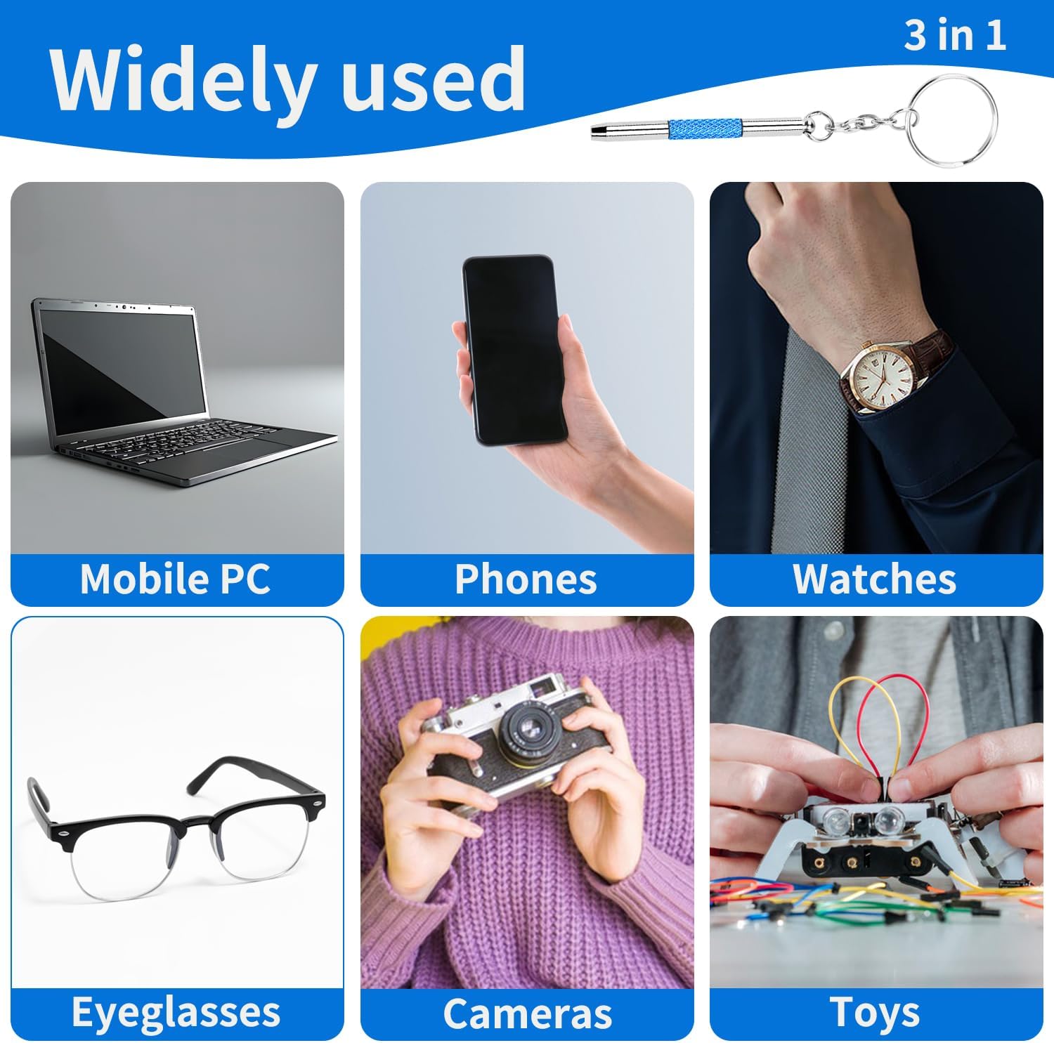 - MINI-SCHRAUBENDREHERSATZ Das Set enthält zwei multifunktionale Präzisionsschraubendreher. Jeder Schraubendreher für Brillen verfügt über einen Schlüsselring, ist leicht zu tragen und passt in jede Tasche , um unerwartete Probleme unterwegs zu lösen.