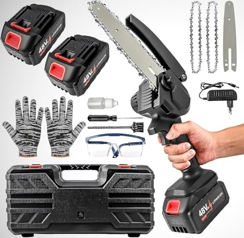 Mini Kettensäge 6 Zoll mit Akku 6000mAh, 18.5V Minikettensäge mit Ersatzkette und eine leere Ölkanne, Elektrische Handkettensäge Akku für Gartenscheren Astschere HolzschneidenMini Kettensäge 6 Zoll mit Akku 6000mAh, 18.5V Minikettensäge mit Ersatzkette und eine leere Ölkanne, Elektrische Handkettensäge Akku für Gartenscheren Astschere Holzschneiden