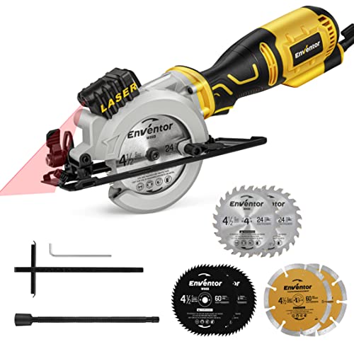Mini Kreissäge, ENVENTOR 705W Handkreissäge mit 6 Sägeblättern, Mini Handkreissäge mit Führungsschiene & Laserführung, 3500RPM, Ideal für Holz, Weichmetall, Kunststoffschnitte, Einhändiges Halten