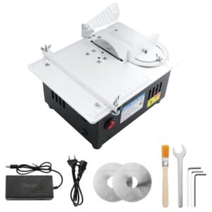 Mini Tischkreissäge 96W, Tragbare Präzisions Tischsäge, 7-Gang-Netzteil, Schnitthöhe 0-20mm, mit 2 Sägeblätter & Sicherheitsklappe, Multifunktional Tischkreissäge für Holzarbeiten