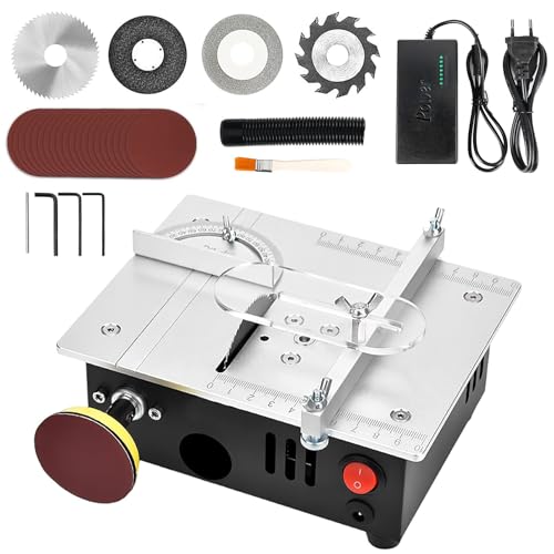 Mini-Tischkreissäge, verstellbare Präzisions-Elektro-Tischkreissäge, verstellbare Sägeblatthöhe, mit 4 Sägeblättern, 7 Geschwindigkeitsstufen, für die Holzbearbeitung