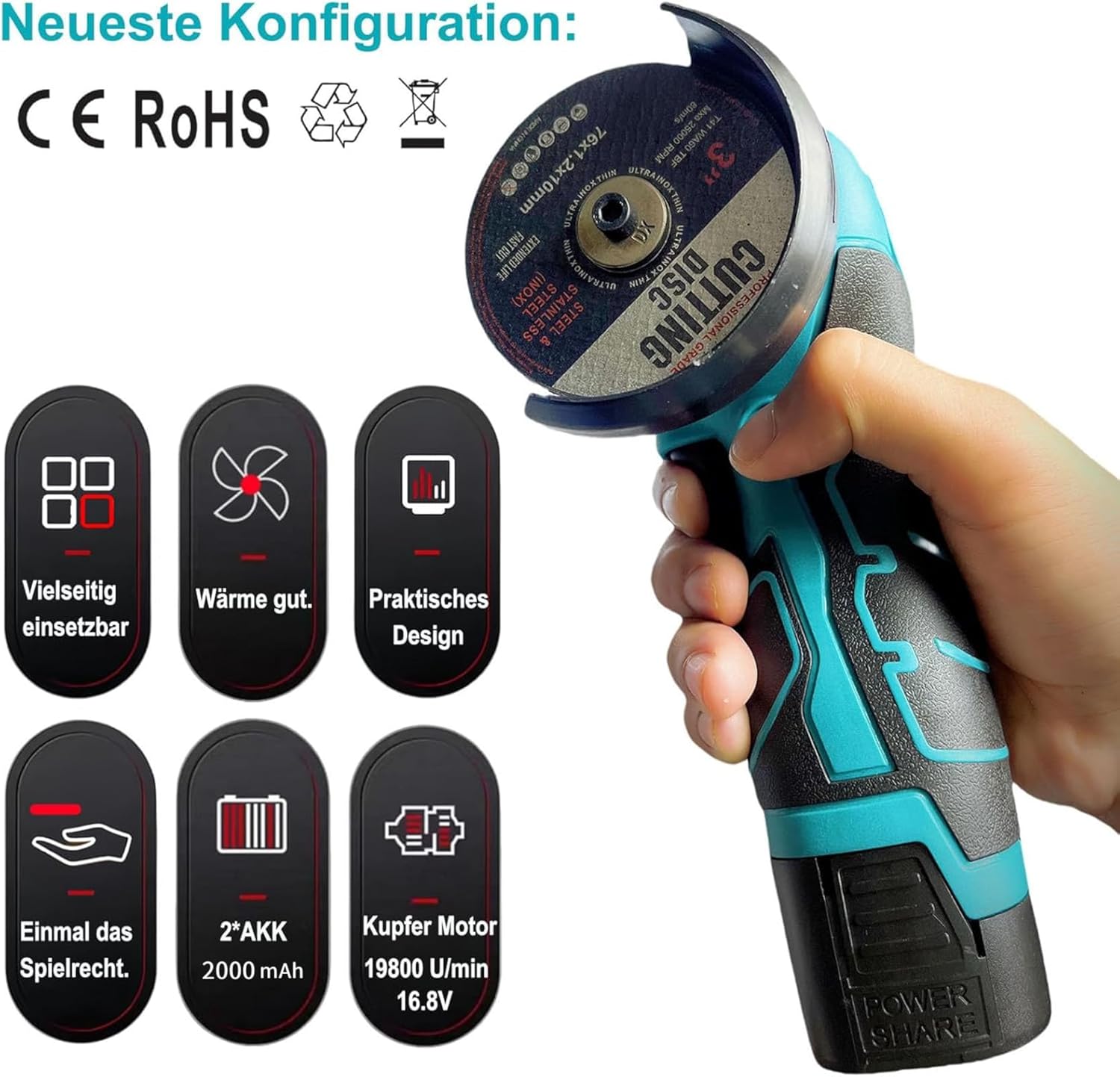 Mini Winkelschleifer,16.8V Akku Mini Flex 28000 rpm/76mm,Professional Mini Akku Winkelschleifer Set Geeignet zum Schneiden und Polieren