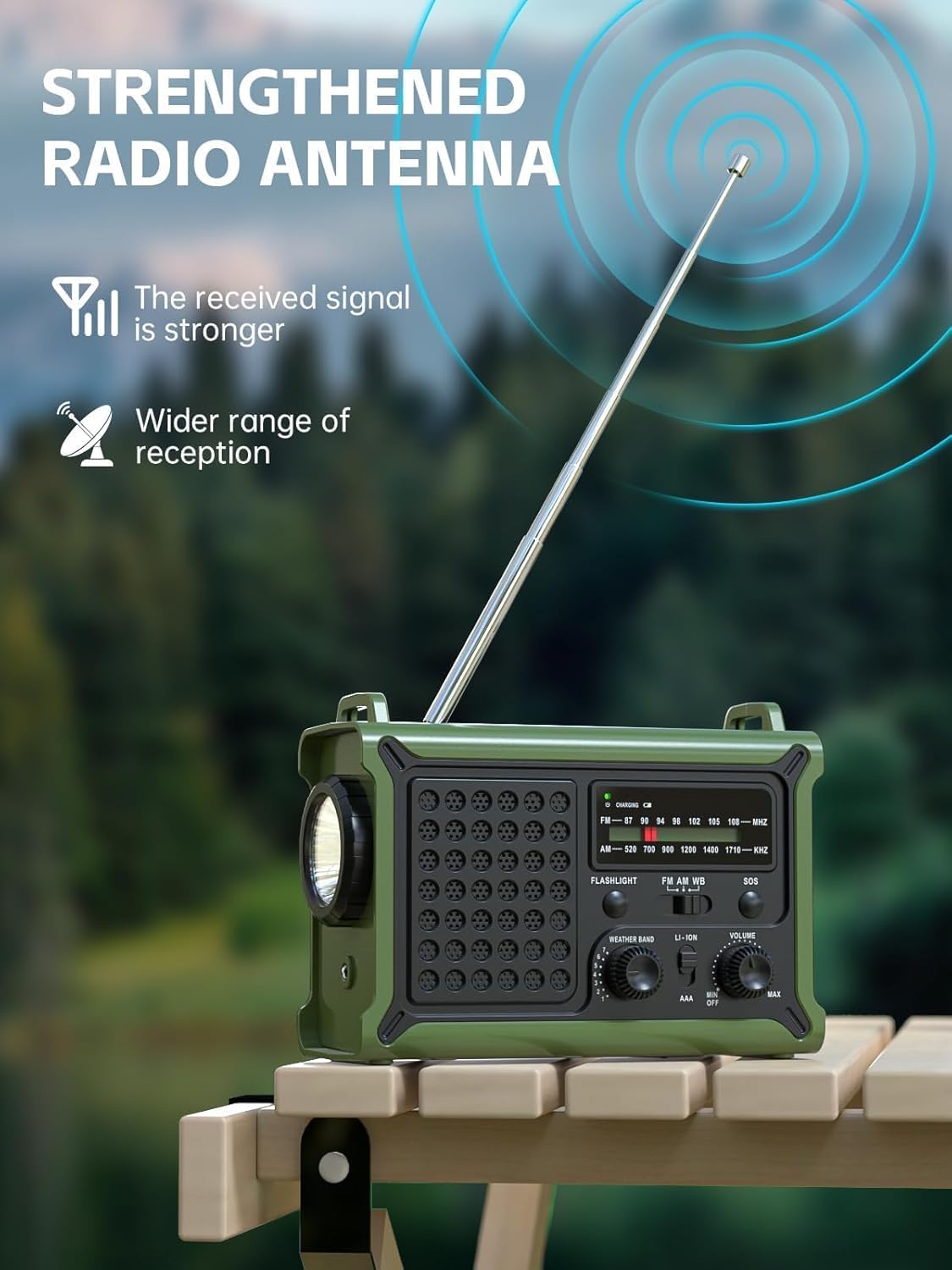 - Sauberer AM/FM-Empfang: Mit einem hochempfindlichen digitalen Radiochip und einer einziehbaren Antenne können Nachrichten, Musik und Notfallsendungen auch in abgelegenen Gebieten wie Bergen und Vororten deutlich gehört werden, was es zu einer zuverlässigen Informationsquelle für Katastrophenhilfe und Outdoor-Abenteuer macht. Mit dem unabhängigen Knopfdesign können Sie die Lautstärke einfach mit einer Hand einstellen.