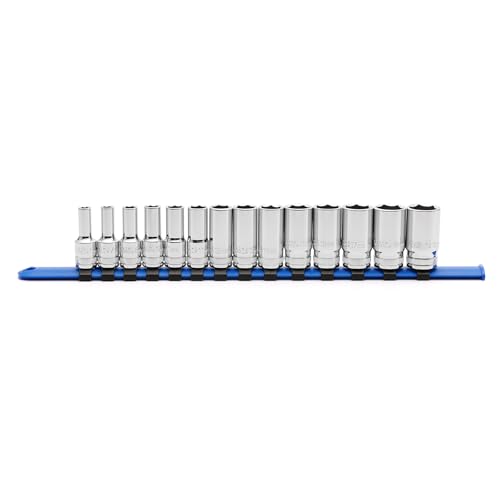 MIXPOWER 3/8-Zoll-Antrieb, mittellanges Steckschlüssel-Set mit Aufbewahrungsschienen, 14-teilig, 6-kant, 6-19 mm, CR-V, metrisch, halbtiefes Steckschlüssel-Set