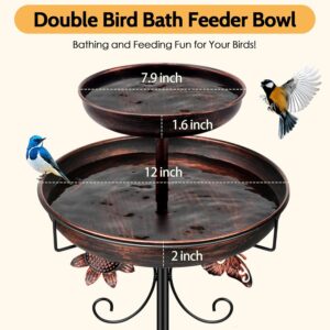 Mngren Vogeltränke Stehend,Vogelbad für Draußen Garten,2 In 1 Metall Vogelbecken Schüssel Wassertränke für Vögel, Antike Vogeltränke Winterfest Futter Wasserschale (Antike Bronze)