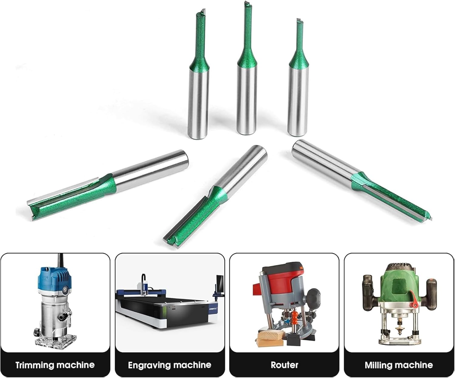 - 5.【Breite Anwendung】Ideal für Kantenbearbeitung, Nutfräsen, Trimming und CNC-Arbeiten; Diese Fräser für Oberfräse eignen sich für Hand- und Tischfräsen, jedoch nicht für Metall oder harte Materialien