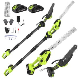 Motorsäge und Heckenschere Akku Teleskop Combo, 4 in 1 Mini Kettensäge 6 Zoll Elektrisch mit 2 * 4000 mAh Akku, 4 Kette, Handschuhe Schutzbrille Geeignet für Astschere Gartenpflege und zum Holzfällen