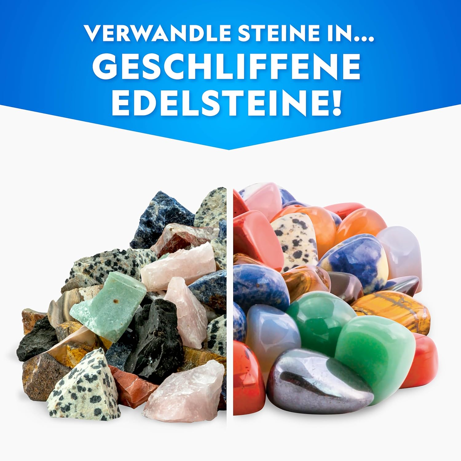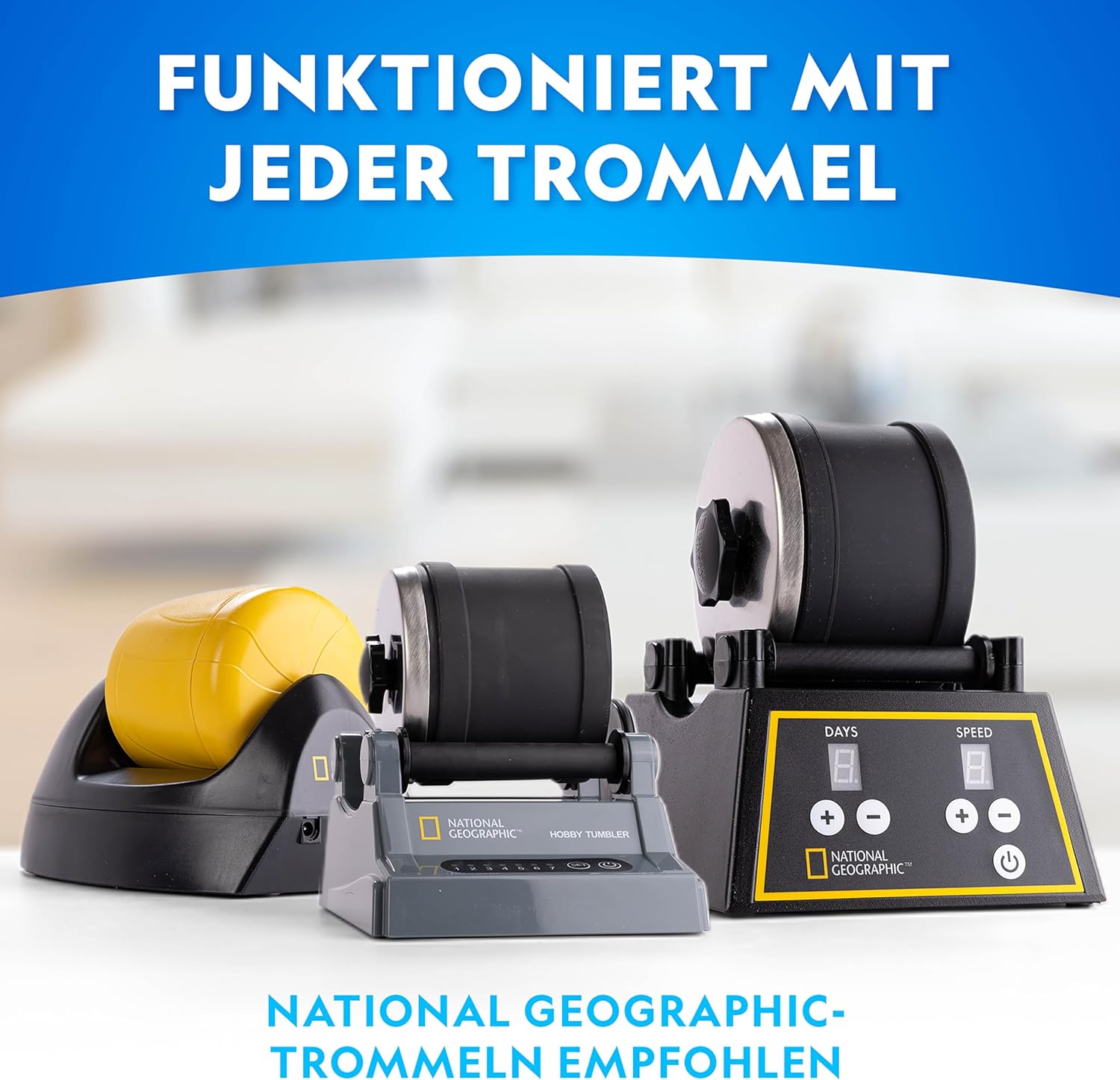 Das National Geographic Schleif- & Poliermittel Nachfüllset basiert auf hochwertigem Siliziumkarbid, einem der härtesten Schleifmittel für die Gesteinsbearbeitung. Wer seine eigene Steintrommel betreibt, weiß, dass die Qualität des Ergebnisses maßgeblich von der Konsistenz der Poliermittel abhängt. Mit diesem 4-Stufen-System erhältst du einen klaren Fahrplan: Stufe 1 sorgt für den notwendigen Materialabtrag, Stufe 2 glättet die Kanten, Stufe 3 bereitet die Struktur auf den Glanz vor und Stufe 4 sorgt für das finale Finish.