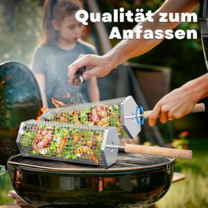 - Effiziente Wärmeverteilung: Durch das rollende Design werden Lebensmittel rundum gleichmäßig gegart – perfekt für punktgenaue Ergebnisse bei kleinteiligem Grillgut.