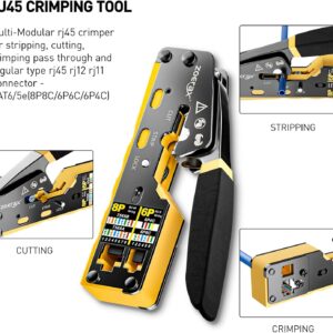 - • Effizientes Pass-Through Design: Die Crimpzange ermöglicht das Durchschieben der Adern durch den Stecker, was die manuelle Kontrolle der Kabelreihenfolge massiv vereinfacht.