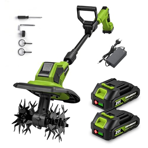 NewBeny Akku-Bodenhacke Gartenfräse Elektrisch mit 2 x 2,0-Ah-Akkus, Bodenfräse mit 4 Sätzen Stahlmessern, 23 cm Breite und 17 cm Gartenfräse Akku zum Jäten, Bodenbearbeiten und RasenpflegeNewBeny Akku-Bodenhacke Gartenfräse Elektrisch mit 2 x 2,0-Ah-Akkus, Bodenfräse mit 4 Sätzen Stahlmessern, 23 cm Breite und 17 cm Gartenfräse Akku zum Jäten, Bodenbearbeiten und Rasenpflege