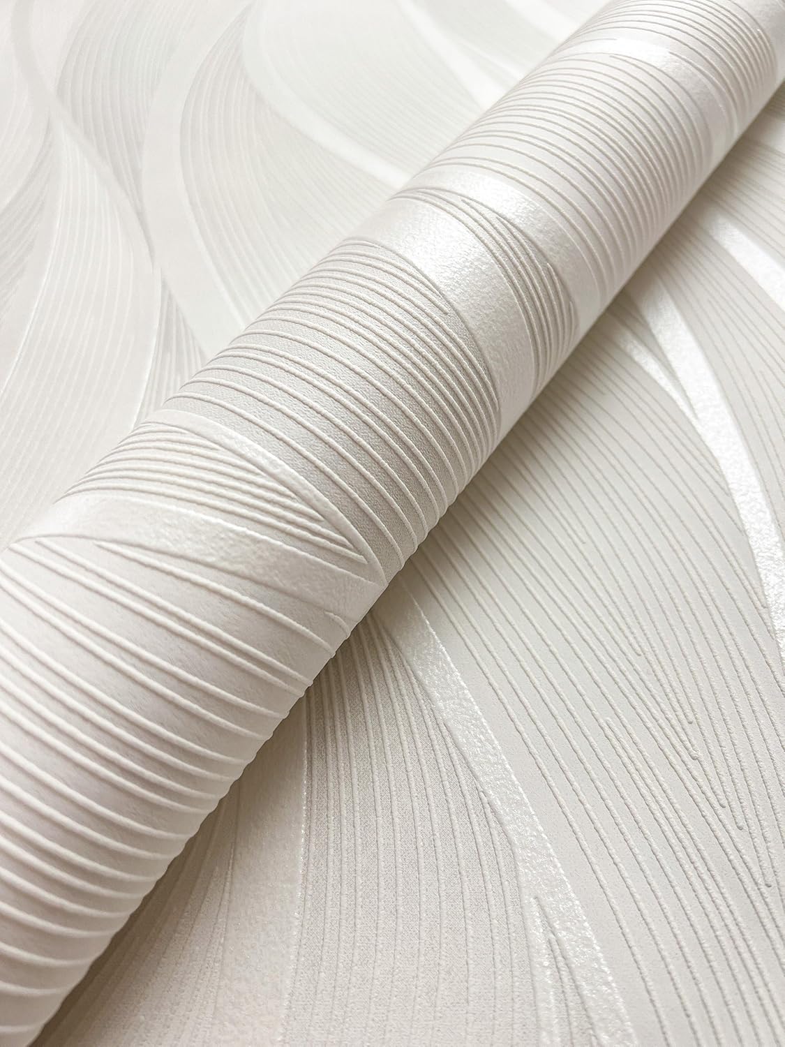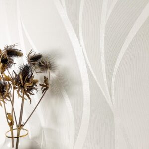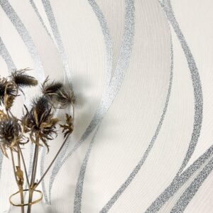 Die cremeweiße Tapete mit ihrem eleganten Wellenmuster und dem zarten Metallic-Schimmer ist ideal für Wohn- und Schlafzimmer geeignet. Durch die 3D-Optik entsteht eine beruhigende, luxuriöse Atmosphäre, die besonders gut mit Naturmaterialien oder goldenen Akzenten harmoniert.