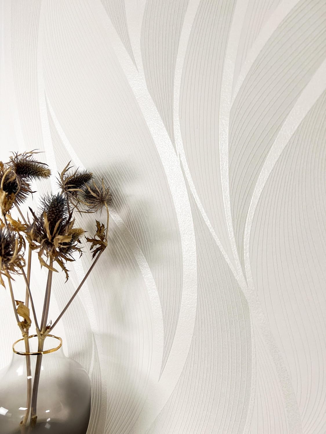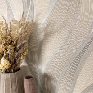 Die moderne 3D-Optik erzeugt durch das sanfte Lichtspiel der Wellenstruktur eine edle Wirkung, die besonders in Verbindung mit weißen Möbeln oder Textilien in Beige zur Geltung kommt. Um eine harmonische Eleganz abzurunden, lässt sich das Design hervorragend mit warmen Holzmöbeln und goldenen Accessoires kombinieren.