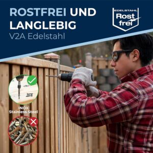 Unsere Kunden berichten von der hohen Verarbeitungsqualität dieser Edelstahlschrauben: Mit 4,6 Sternen aus 1372 Bewertungen gehören sie zu den bestbewerteten Spanplattenschrauben in dieser Größe. Besonders gelobt wird der taumelfreie TORX-Antrieb, der auch bei längeren Montageeinsätzen nicht ausleiert.