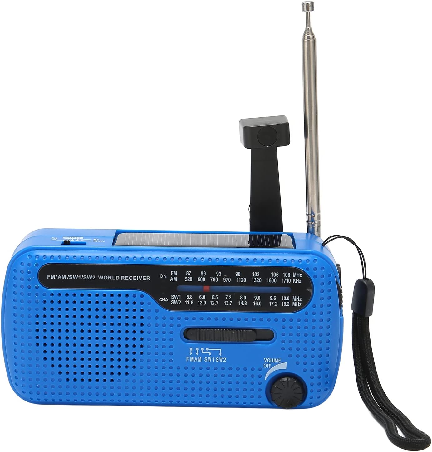 Notfall-Handkurbelradio Solar-Wind-Up-Radios mit USB-Handy-Ladegerät, Taschenlampe, tragbares AM/FM-Radio für draußen (Blau) – BSTCAR