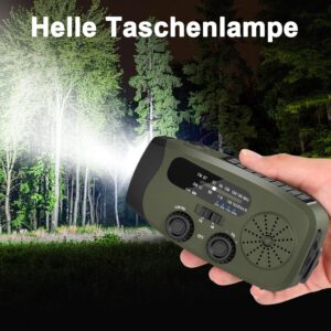 - đĄăHelle Taschenlampe fĂŒr verlĂ€ssliches LichtăAusgestattet mit einer leistungsstarken, hellen Taschenlampe bietet dieses Kurbelradio Notfall verschiedene Lichtmodi, einschlieĂlich Dauerlicht und SOS-Blitz. Ideal als Emergency-Taschenlampe bei Blackouts oder auf dem Campingplatz. Diese essentielle Beleuchtung sichert Sichtbarkeit in jeder Notfall-Situation â Ihr vielseitiges Radio mit Kurbel und Solar fĂŒr umfassende Vorsorge.