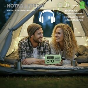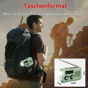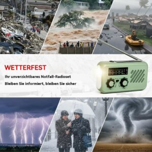 Notfall Radio, 3-Wege-Ladung (Solar, Kurbel, USB-C) Powerbank, 2000mAh Akku, AM/FM Radio, SOS, LED-Taschenlampe, Klein für Camping, Outdoor, Zuhause, Notfall – Fuhuihe