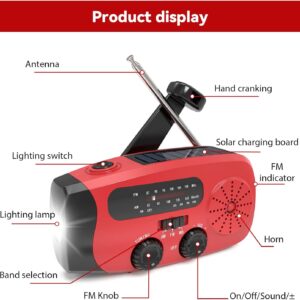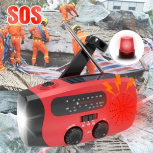 Notfall-Solarradio mit Handkurbel zur Selbstaufladung, Kurbelradio mit Solar und LED Taschenlampe,2000mAh Solar Radio,SOS-Alarm,AM/FM/WB, Weltempfänger für Camping und Outdoor (red) – Eznaobo
