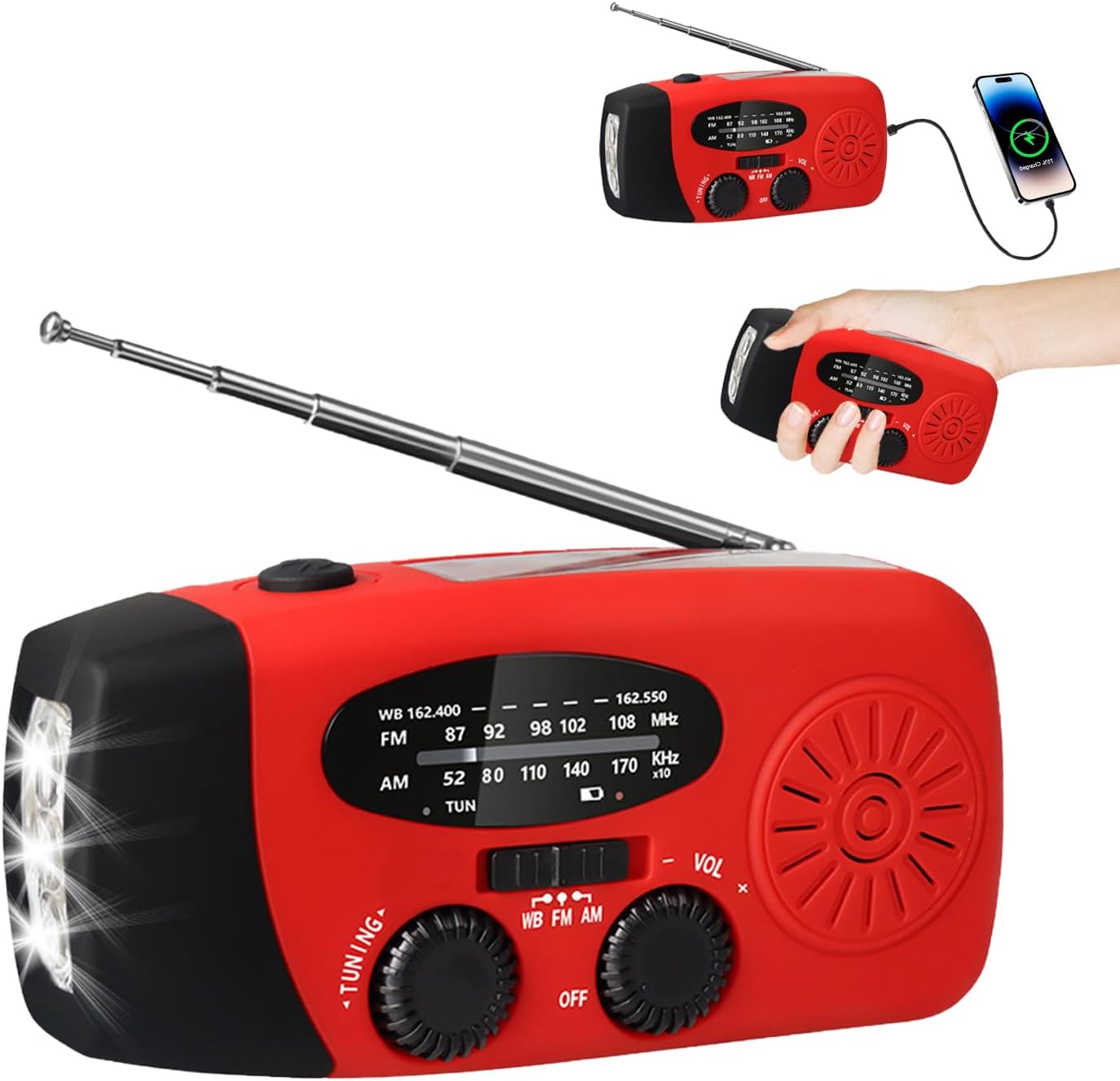 - 【Taschenlampe + SOS-Signal 】 Mit integrierter starker Taschenlampe und SOS-Blinkfunktion ist dieses kurbelradio mit taschenlampe ideal für Dunkelheit: Die Taschenlampe liefert helles Licht für Orientierung, das rhythmische SOS-Signal erregt schnell Aufmerksamkeit – perfekt bei Notfällen oder Outdoor-Nächten.