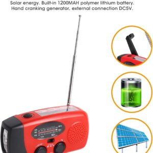 - 4 Arten der Stromversorgung: Das Notfall-Solarradio verfügt über Solarstromversorgung, Handkurbel, DC 5V USB-Aufladung und eine 1200 mAh Powerbank, sodass es auch bei längeren Stromausfällen weiter betrieben werden kann