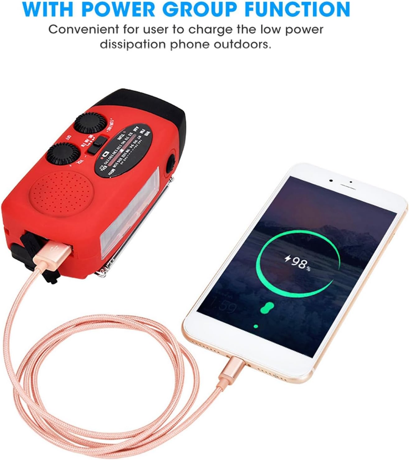 - FM/AM NOAA-Funktion: Das Solar-Kurbelradio empfängt über AM/FM/NOAA (87-108 MHz/520-1710 MHz/162 MHz) Wetterwarnungen, Nachrichten, Musik und Notfallmeldungen