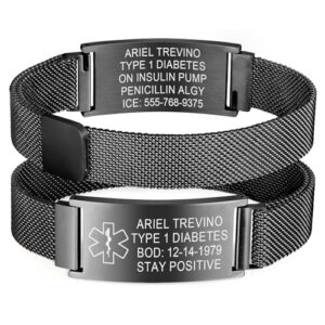 • ⚕️【Edelstahl Notfallarmband 】Dieses personalisierte medizinische Notfallarmband besteht aus Edelstahl ID tag, Edelstahl Strap mit Magnetverschluss gefertigt,der eine hohe Beständigkeit gegen Rost, Korrosion und Anlaufen aufweist, langlebig und hypoallergen ist. Dieses medizinische Alarmarmband ist wasserdicht und extrem bequem. Entwickelt, um Sie 24/7 sicher zu halten.
