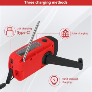 Notfallradio, Solarkofferradio mit Handkurbel & USB-Ladegerät – Tragbares Notfallradio mit AM/FM/WB Empfang, LED-Taschenlampe, SOS-Alarm, wasserdicht IPX3 für Outdoor, Camping & Notfälle (rot) – Kouamor