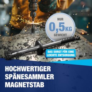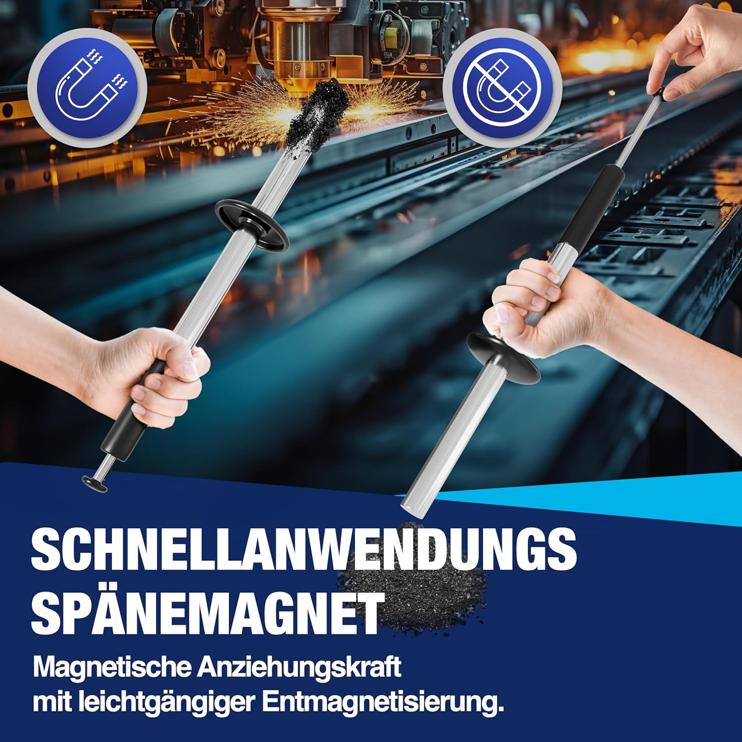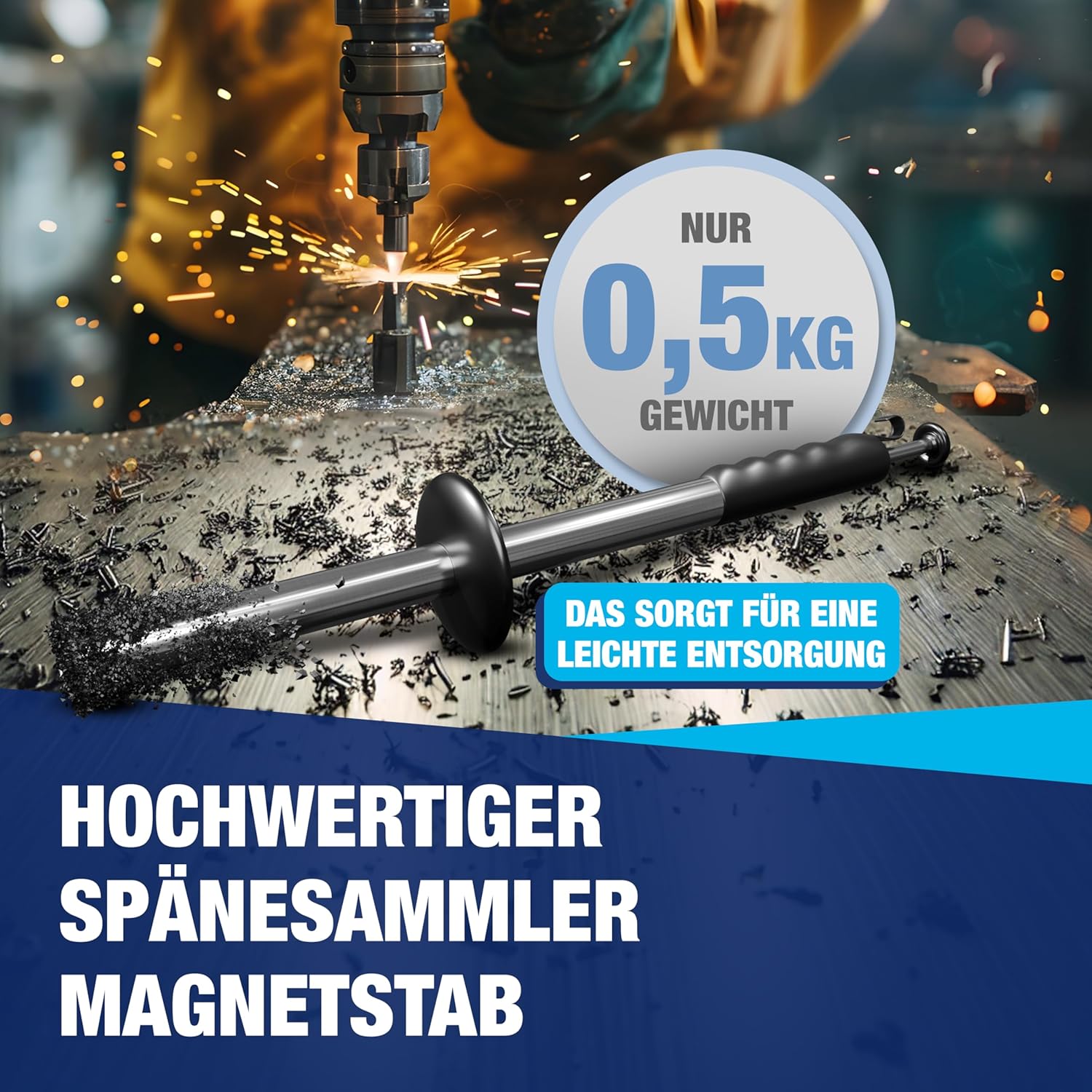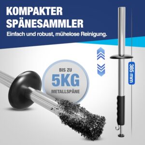 • Leistungsstarker Spänesammler: Der NTG magnetische Spänestab mit einer Kapazität von 5 kg ist ideal für das Aufnehmen von Metallspänen und Hobelspänen in Werkstätten und Industriebetrieben, wodurch die Arbeitsumgebung sauber bleibt.