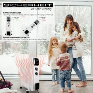 Ein Ölradiator mit 2500 Watt Leistung ist eine bequeme und flexible Lösung für verschiedene Räume. Er kann effektiv eine Raumfläche von maximal 25 bis 30 Quadratmetern beheizen.