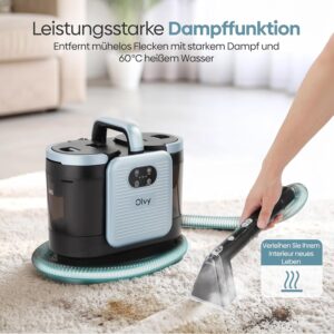 Der Olvy Teppichreiniger PRO überzeugt durch seine hohe Leistungsstärke mit 1650W Heizleistung und 13.000 PA Saugleistung. Dank der zusätzlichen 100°C Dampffunktion beseitigt das Gerät selbst hartnäckige Flecken aus Teppichen, Sofas und Matratzen besonders gründlich. Mit einer Bewertung von 4,3 Sternen ist er eine vielseitige Wahl für die Polster- und Teppichpflege.