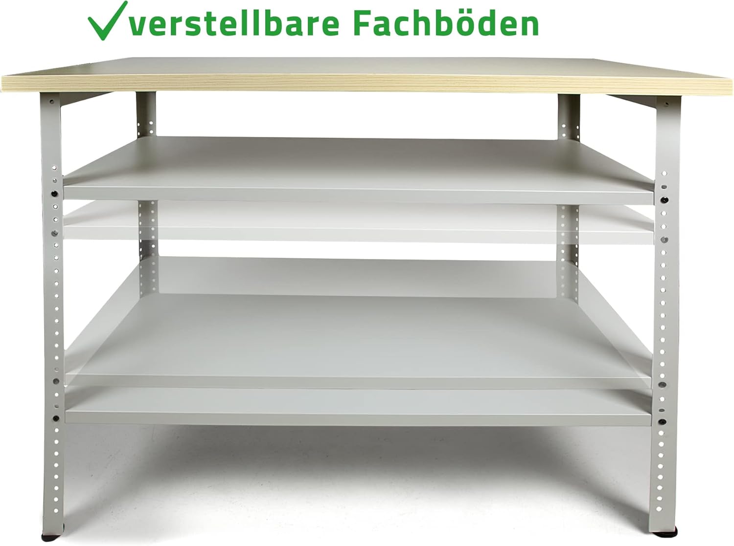 - die Metall Werkbank ist einbrennlackiert und damit besonders kratzfest, das freundliche Lichtgrau bringt Helligkeit in Deine Werkstatt