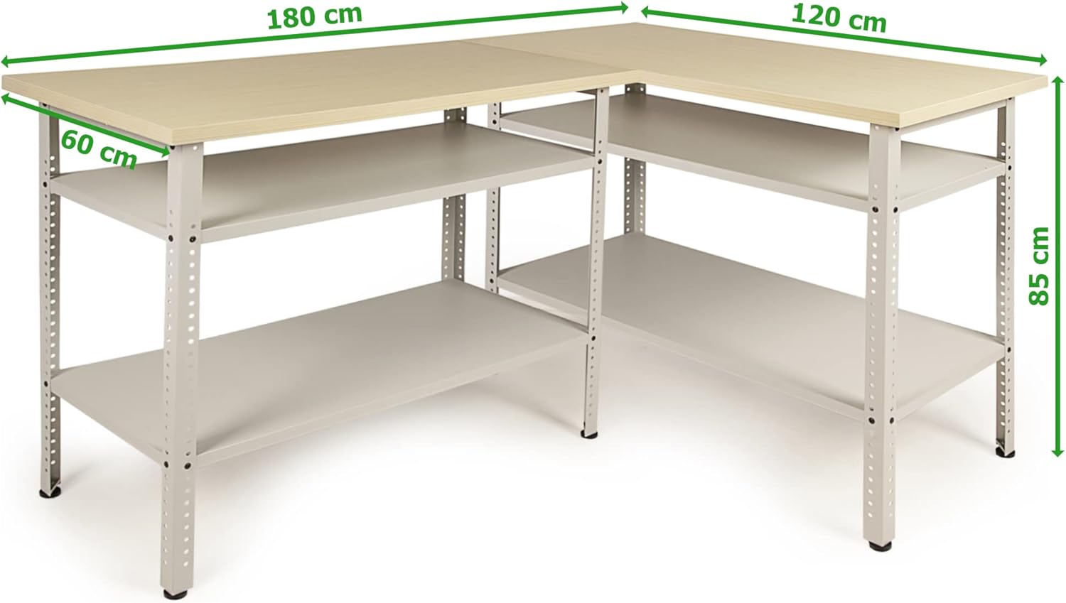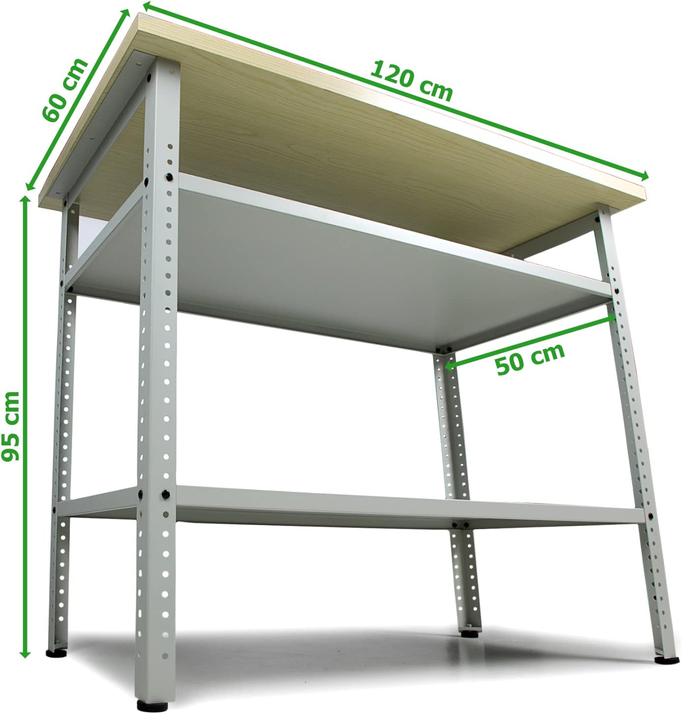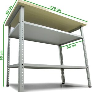 - die Maße betragen je 120 x 60 x 95 (H) cm und bieten Dir und Deinen Hobbys genug Platz zum Austoben, der Freiraum unter der melaminbeschichteten Arbeitsplatte bietet außerdem genug Möglichkeiten um einen Schraubstock zu installieren