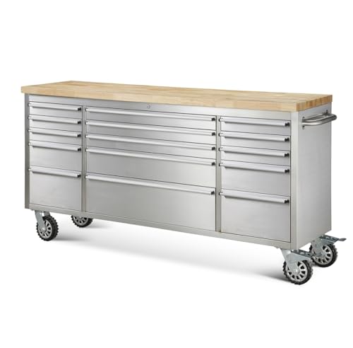 Ondis24 Edelstahl-Werkstattwagen Werkzeugwagen mit 10 Leichtlaufschubladen & XL-Massivholzarbeitsplatte, Lenkrollen, unbestückt (Grau, 198 x 49 x 95 cm (15 Schubladen))Ondis24 Edelstahl-Werkstattwagen Werkzeugwagen mit 10 Leichtlaufschubladen & XL-Massivholzarbeitsplatte, Lenkrollen, unbestückt (Grau, 198 x 49 x 95 cm (15 Schubladen))