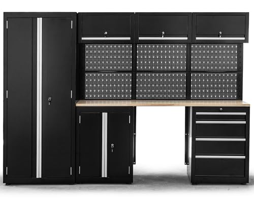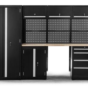 Ondis24 XL Werkstatt Komplett Set 260cm vormontierte Männerküche Werkstattrichtung modular mit Holzarbeitsplatte, Werkzeugschränke, Werkbank mit Schubladen (9 TLG.)