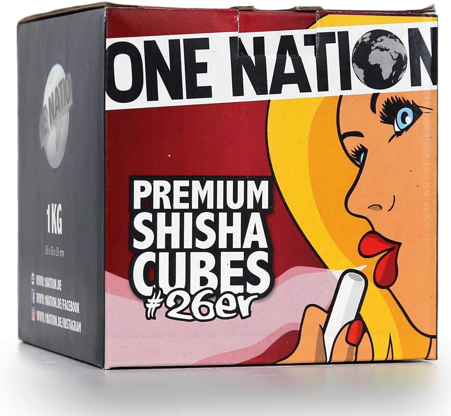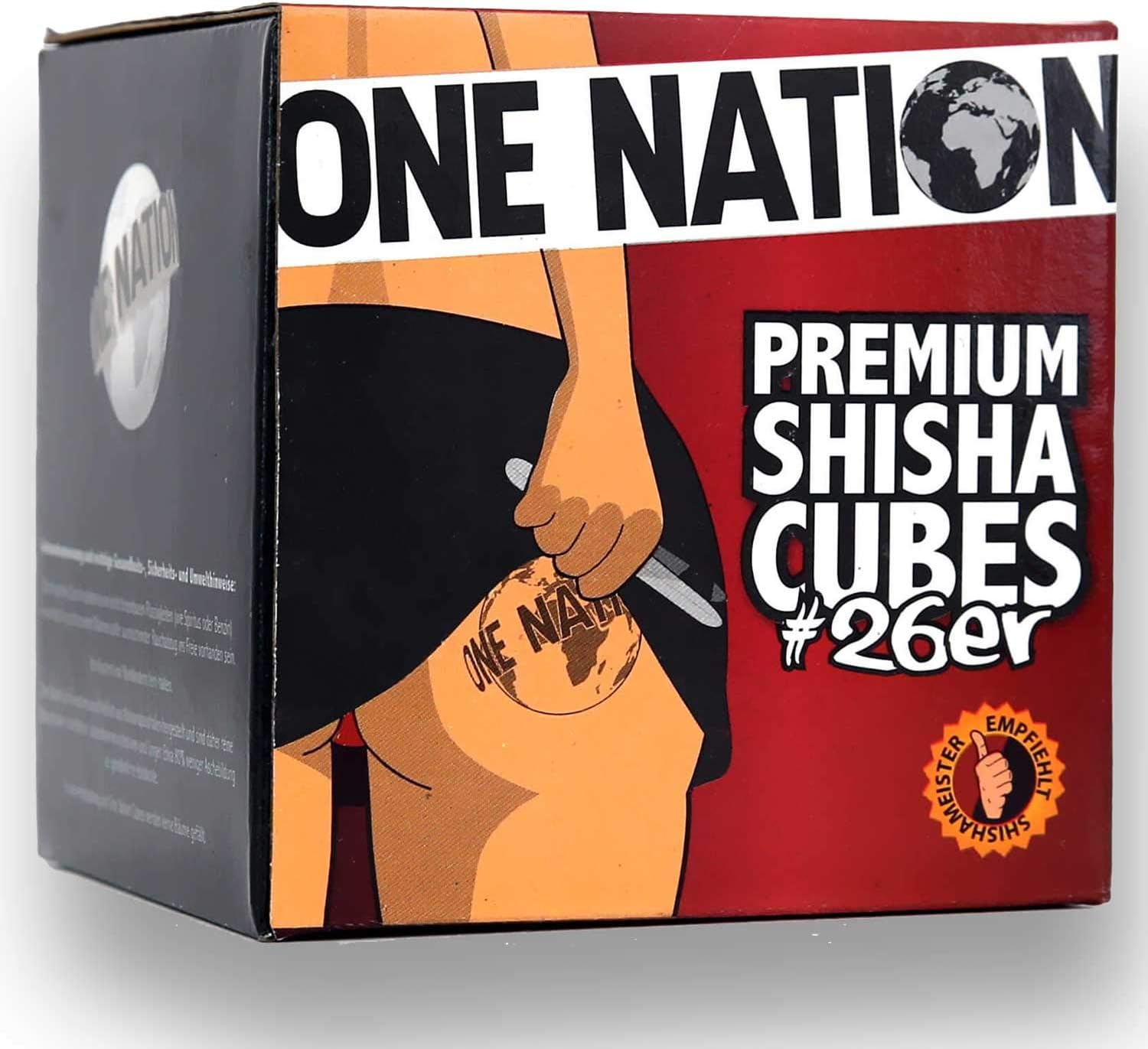 ONE NATION – 100% Naturkohle aus Kokosnussschale | 26 mm WürfelOne Nation-Kokoskohle verbrennt mit 6800 Kilokalorien, mit konstanter Hitze über etwa 1,5 – 3 Stunden ( Angaben des Herstellers ) je nach Bedarf. Damit wird das Shisha Rauchen bequemer, angenehmer und vor allem sparsamer, da weniger Kohle beim Rauchen benötigt wird.Das Rauchen mit One Nation – Kokoskohle ist sparsamer, sauberer und einfacher als herkömmliche Kohle oder Standard-Selbstzünderkohle. Dies hat was mit der Zusammensetzung